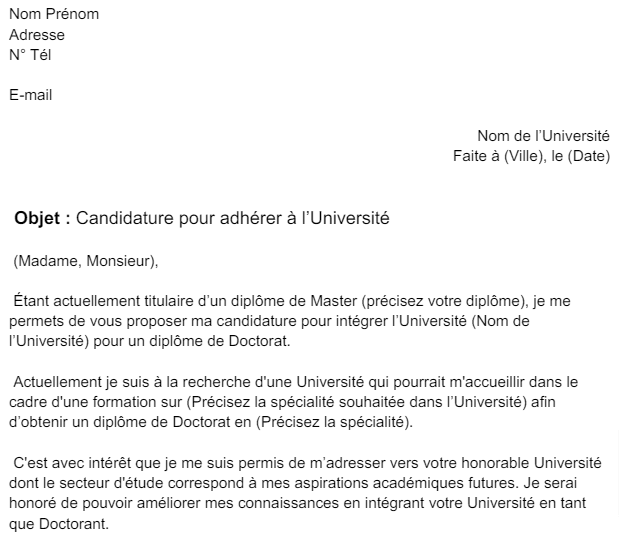 Que ce soit pour intégrer une école post bac, une université en anglais, un master, un stage ou une formation scolaire, la rédaction d’une lettre de motivation en anglais est la même. Pour ce qui est des coordonnées de l’expéditeur, par exemple, ils sont à positionner en haut et à droite. En ce qui concerne les coordonnées du destinataire, ils sont à mettre à gauche. N’oubliez pas non plus d’y ajouter la date. Elle doit se situer au-dessus des coordonnées du destinataire.