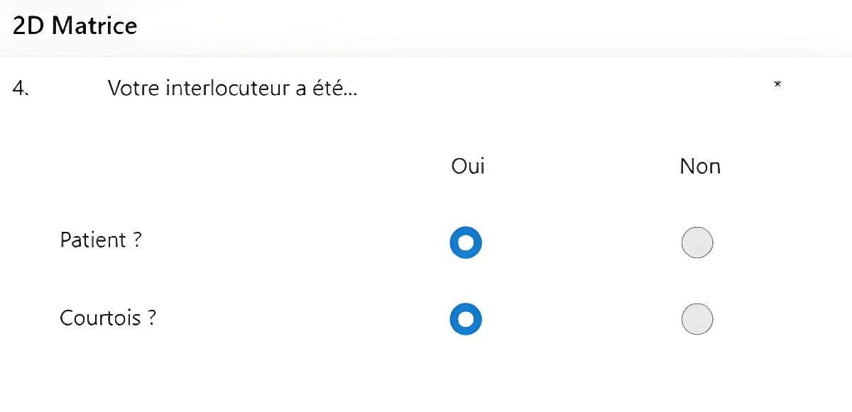Maintenez vos questions courtes et succinctes – n’ajoutez pas de phrases explicatives lorsque la question elle-même est claire afin d’éviter de distraire le répondant. |
