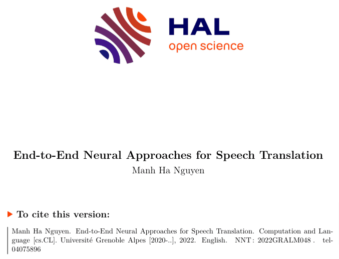 - Manh Ha Nguyen. Computation and Language [cs.CL]. Université Grenoble Alpes [2020-..], 2022. English. ⟨NNT : 2022GRALM048⟩, (tel-04075896v1).